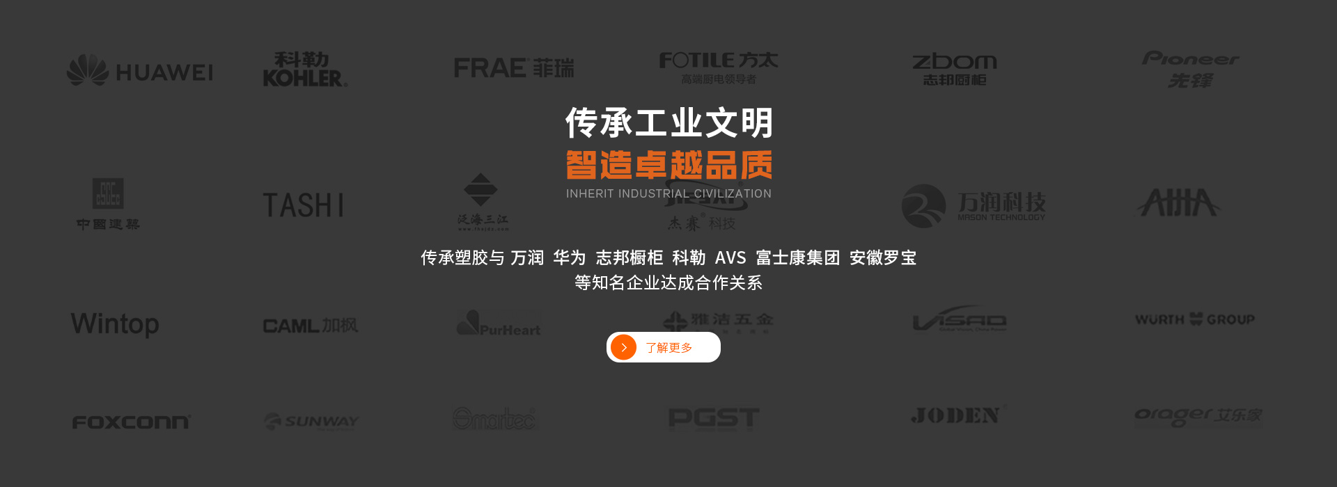東莞傳承塑膠電子有限公司創立于2008年,位于世界制造業名城廣東省東莞市。以傳承工業文明 ,智造卓越品質為已任。經過十余年發展沉淀致力于打造為塑膠標準件行業的優秀標桿企業?,F有職員50余人,業務遍及60多個國家和地區,服務多家知名企業,如:科勒華為、歐司朗 、方太、中國建筑工程公司、AVS等。 公司主營產品有塑料膨脹管,塑料螺絲保護帽,配線器材等類產品。經過十余年的研發創新與管理實踐,在渠道供應鏈,產品設計,生產管理方面具備較高專業的技能及大客戶服務能力。截至2020年底,累計申請有產品專利三十余項,能根據客戶要求開發模具及定做非標產品,產品符合環保認證,UL阻燃認證,抗老化UV認證等。 公司目前已成為國內外多家知名企業的長期合作伙伴,我們秉承“客戶第一,誠信 ,創新,合作共贏”的經營理念,愿與您攜手共同打造更加優質的產品與服務。